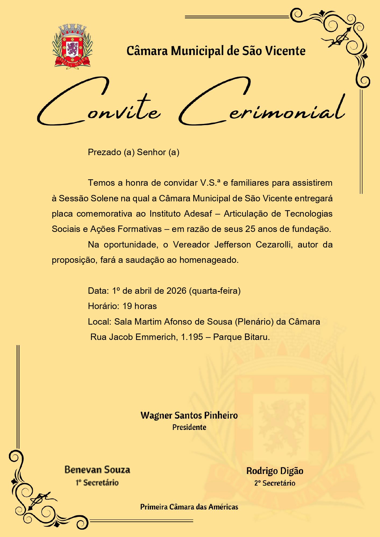 | 31/03/2026 | Convite para Sessão Solene: Homenagem aos 25 anos da ADESAF |