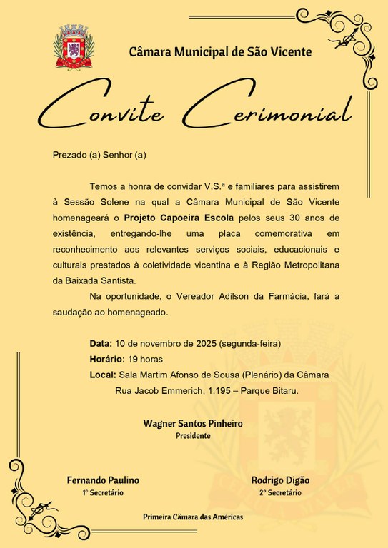 Convite para Sessão Solene: Homenagem ao Projeto Capoeira Escola